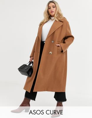 ASOS DESIGN Curve longline textured coat with mixed buttons in stone